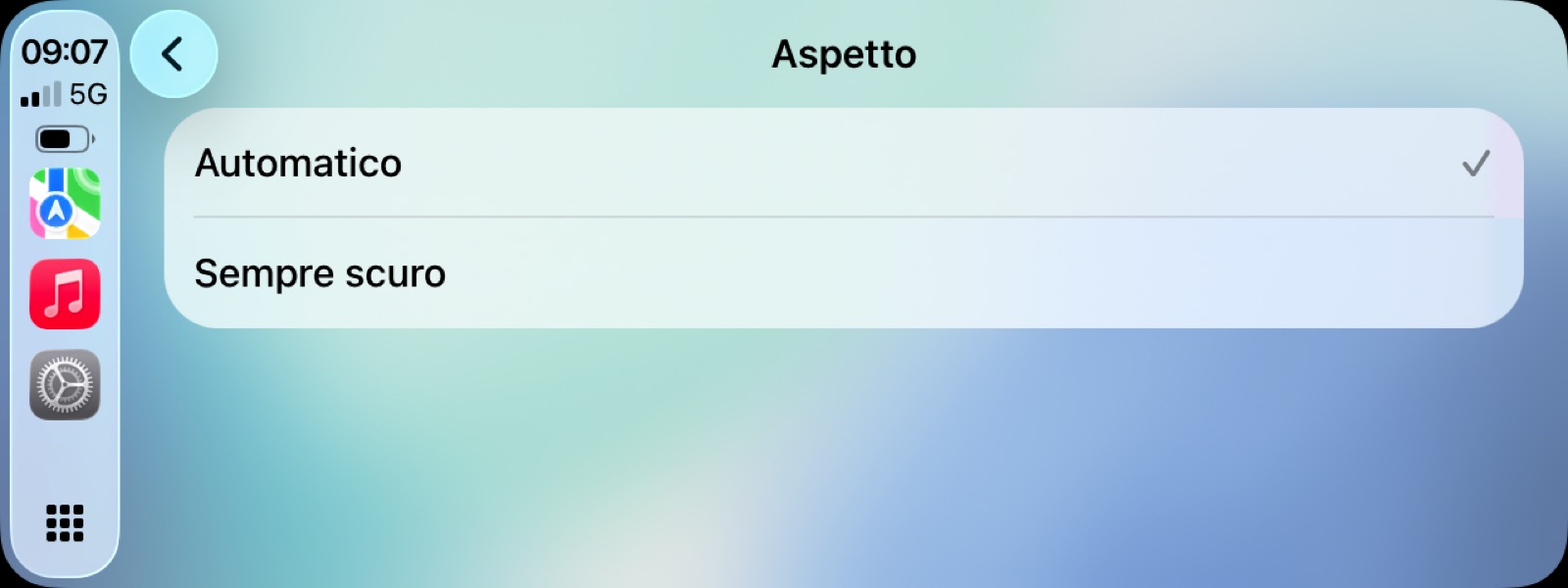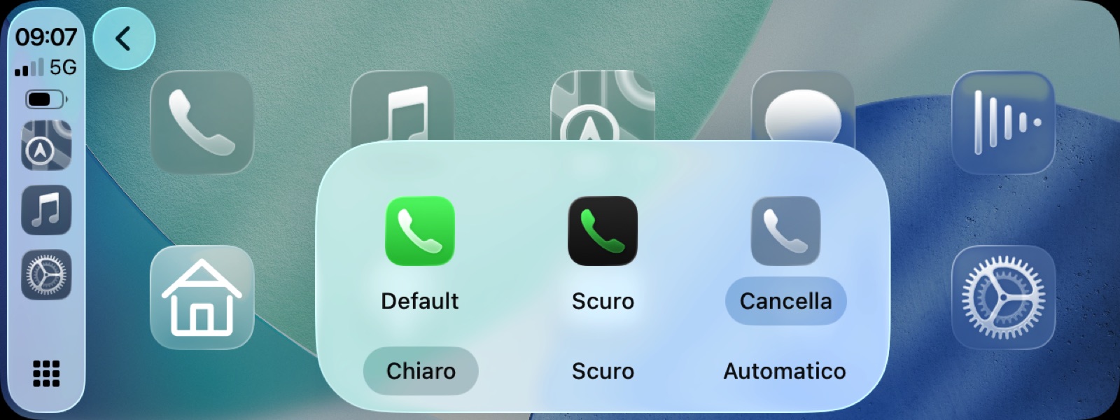 L’interfaccia di CarPlay si allinea al look di iOS 26 e abbraccia a pieno il nuovo linguaggio visivo “Liquid Glass”. Questo significa icone ridisegnate, più brillanti e tridimensionali, con bordi smussati e superfici che richiamano la trasparenza del vetro.