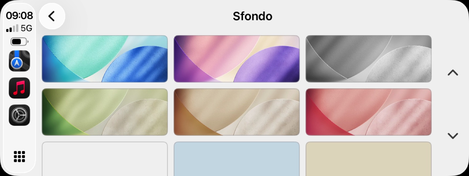 Non manca una galleria di nuovi sfondi, ripresi da quelli introdotti su iOS 26, che permette di rendere la schermata di avvio meno anonima e più in sintonia con lo stile di ciascun automobilista.