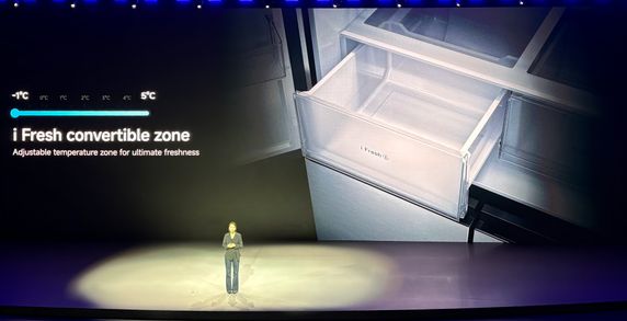 Lo spazio interno comprende il vano “i Fresh” con regolazione della temperatura indipendente da -1 a 5°C. La tecnologia “Ag⁺ freshness” consente invece di ridurre la formazione di batteri e di cattivi odori e di prolungare la conservazione degli alimenti.
