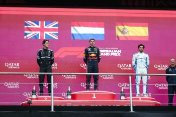 Al termine dei 51 giri in programma, la bandiera a scacchi saluta la vittoria di Max Verstappen, al successo del Gran Premio dell’Azerbaigian.