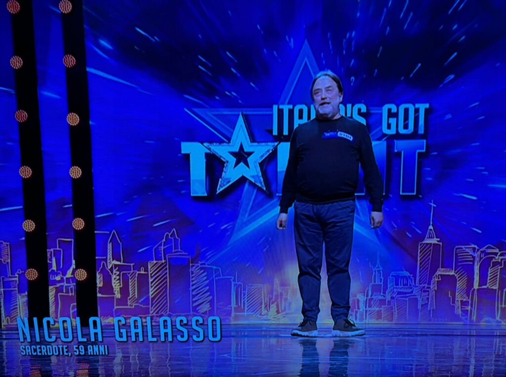 «Mi chiamo Nicola Galasso e vengo da Vasto». «Cosa fai nella vita?», chiede Frank Matano. «Sono un sacerdote». Sul palco di Italia’s got talent frate Nicola Galasso con la sua ironia fa il pieno di applausi. Dopo aver partecipato lo scorso anno ad Avanti un altro, il quiz show di Paolo Bonolis su Canale 5, il parroco della chiesa di Santa Maria del Soccorso a L’Aquila e cappellano dell’Istituto San Francesco di Vasto Marina si cimenta nel talent show visibile in streaming su Disney+.