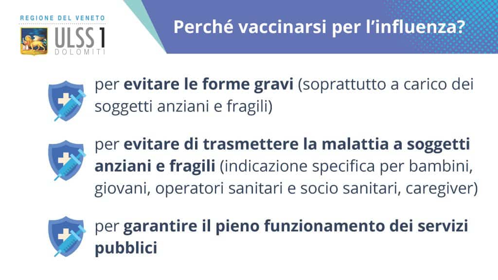 Torna l’autunno e, assieme a lui, riparta anche la campagna vaccinale dell’Ulss 1 Dolomiti contro l’influenza stagionale: dal primo ottobre, le 33mila dosi di vaccino già acquistate dall’azienda sanitaria saranno a disposizione di medici di base, pediatri, farmacie e centri vaccinali.