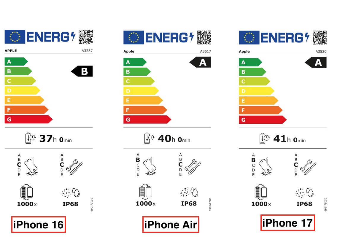 Da esse sappiamo che iPhone Air è certificato per 40 ore. Poco o tanto che sia, il dato è sostanzialmente identico a quello di iPhone 17 e di iPhone 16e (41 ore) e migliore, e non di pochissimo, di quello di iPhone 16 e iPhone 16 Pro (37 ore).