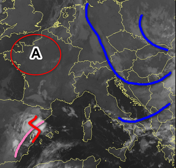 Diciamo due parole anche sul tempo lontano da casa nostra. Il settore orientale della Penisola Iberica rischia un nuovo evento precipitativo molto intenso, stante la presenza di un nucleo perturbato bloccato sul posto. Notate l’alta pressione che si sta rinforzando sui settori nord-occidentali del Continente dove nei prossimi giorni avremo un’ottobrata in piena regola. L’alta pressione medesima, nelle prossime 48 ore, punterà verso nord-est fino ad agganciare un altro massimo pressorio ubicato sulla vicina Russia. Il ponte anticiclonico che si stabilirà sulla media Europa butterà giù aria fredda che a partire da mercoledi 1 ottobre darà origine a maltempo su gran parte d’Italia associato ad un sensibile calo delle temperature. Ne riparleremo nell’arco della mattinata.