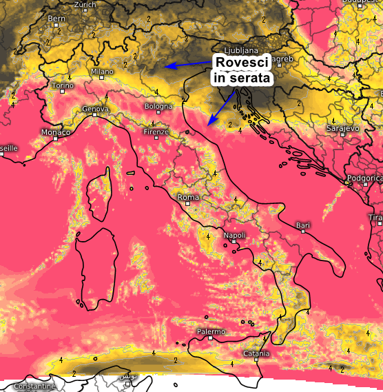 Tempo inizialmente buono quasi ovunque. Nel pomeriggio aumento della nuvolosità al nord-est e nelle aree interne del centro-sud; in serata primi rovesci sulle coste venete e giuliane congiunti ad un rinforzo della Bora. Temperature ancora senza apprezzabili variazioni.