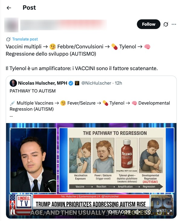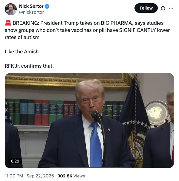 Lunedì 23 settembre il Presidente degli Stati Uniti Donald Trump, affiancato dal Segretario della Salute e dei Servizi Umani Robert F. Kennedy Jr. ha dichiarato pubblicamente che i vaccini infantili sono collegati all’autismo. A seguito di queste dichiarazioni i social si sono riempiti di re-post e commenti al riguardo. In particolare, Trump ha citato gli Amish come una popolazione che avrebbe “praticamente nessun autismo”, implicando un legame causale con il loro basso tasso di vaccinazione. Queste affermazioni sollevano allarmi ingiustificati, in quanto contrastano decenni di solida ricerca scientifica. Robert F. Kennedy Jr., noto critico dei vaccini, ha sostenuto ripetutamente che nessun vaccino sia sicuro. Tuttavia, l’ampia base di prove scientifiche dimostra che non esiste alcuna associazione causale tra le vaccinazioni e i disturbi dello spettro autistico.