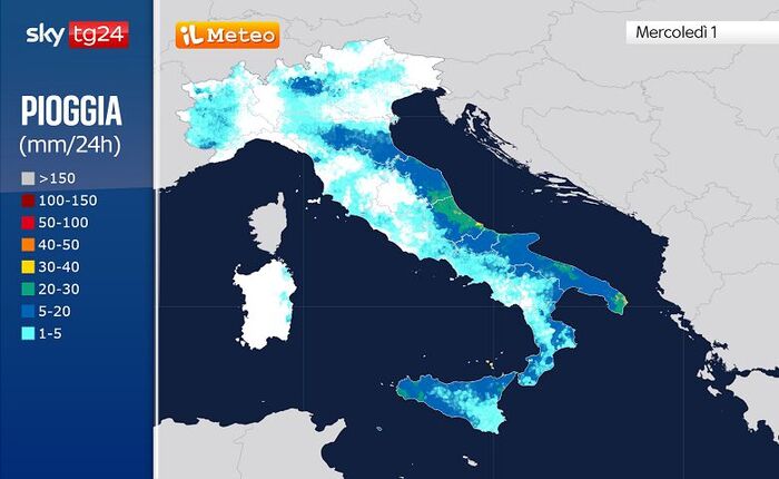 Le precipitazioni previste per Mercoledì 1 OttobreVerso il weekend il maltempo allenterà la presa, con più sole e temperature ancora basse, salvo residua instabilità su Puglia e basso Tirreno. Ma attenzione: da Domenica 5 nuove minacce si preparano all’orizzonte.