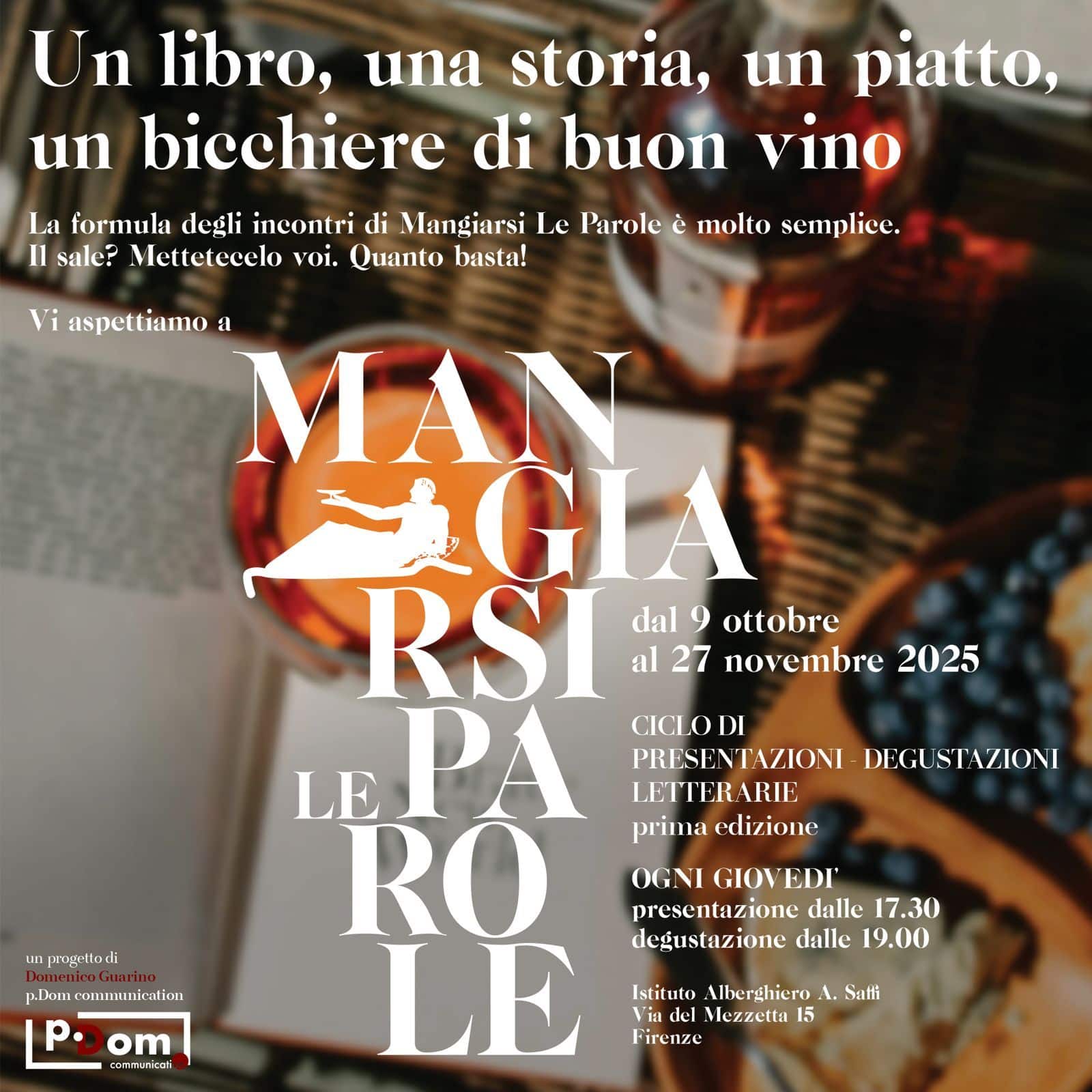 Assaggiare e leggere: due gesti quotidiani che diventano cultura, incontro e conoscenza. È da questa intuizione che nasce “Mangiarsi le parole”, il nuovo ciclo di presentazioni–degustazioni letterarie che si terrà a Firenze tra ottobre e novembre, negli spazi dell’Istituto Alberghiero Saffi. Un’iniziativa, ideata da Domenico Guarino con p.Dom communication, che unisce due patrimoni identitari della città: la tradizione gastronomica e quella letteraria.