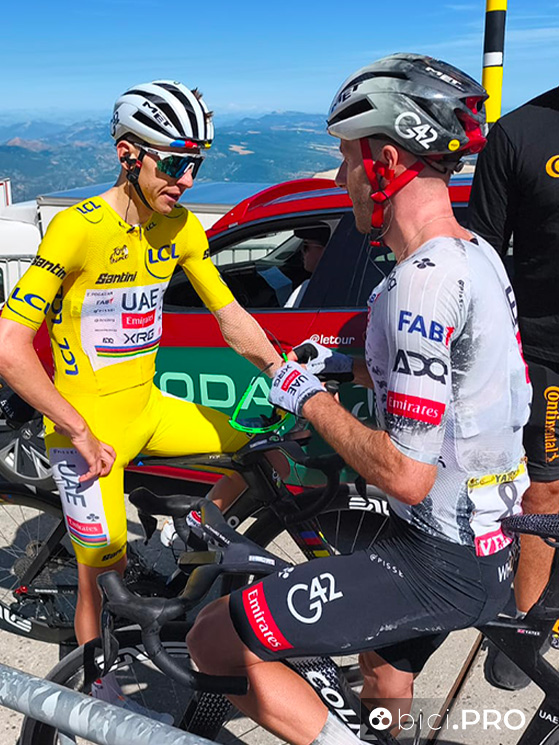 Un breve passo indietro. Ieri nell’hotel subito fuori Montpellier, passando casualmente accanto alla tavola in cui stavano mangiando i corridori della UAE, ci siamo accorti che proprio Tadej tossisse in modo violento. La notizia del ritiro mattutino di Van der Poel per problemi respiratori aveva acceso un allarme. Se davvero c’è qualcosa e gli avversari se ne accorgono, sul Ventoux per lui si farà dura.