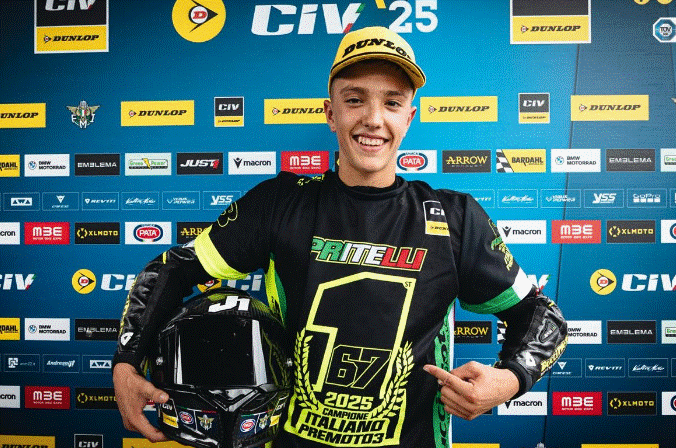 Velocità Lorenzo Pritelli è il Campione Dunlop CIV PreMoto3 2025 Ph FMI