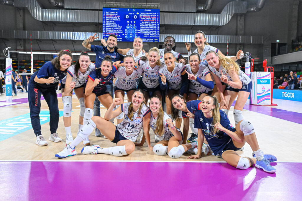 Terzo set – Sul 3-3 Knollema, Kacmaz e due errori di Nemeth portano Firenze sul 7-3. Negro ferma il gioco. Al rientro Gray (un attacco e due muri) firma tre punti consecutivi, quindi la parità viene ripristinata a 7 da un altro muro, di Nemeth. L’inerzia torna favorevole al Bisonte che con Acciarri, Villani e Knollema ripristina il +3 (14-11). Dopo il suo secondo time-out Negro getta nella mischia Antunovic e Dambrink. Il cambio di diagonale funziona: Nervini e Dambrink riportano sotto Chieri (17-16). Sul 19-17 rientrano Van Aalen e Nemeth. Due muri consecutivi di Bukilic danno la spallata decisiva a favore delle padrone di casa che salgono a 24-20 con Villani e dopo il 24-21 di Nervini realizzano il 25-21 ancora con Villani. Nelle statistiche del set svetta Knollema con 8 punti.
