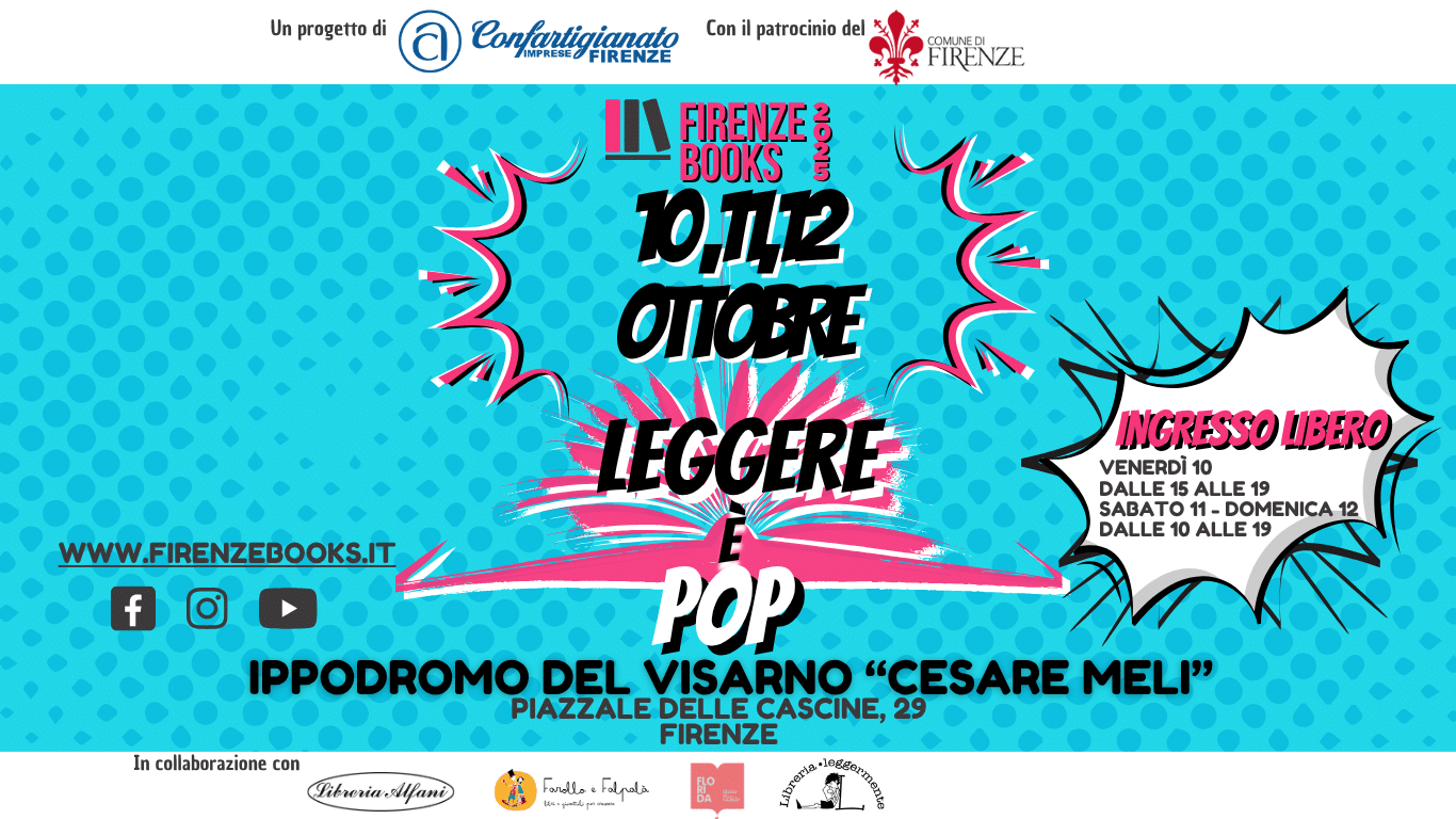 Dal 10 al 12 ottobre i tre giorni organizzati da Confartigianato Imprese Firenze in collaborazione con Libreria Alfani, Libreria Farollo e Falpalà, Libreria Florida, Libreria Leggermente si svolgeranno nuovamente presso l’Ippodromo del Visarno al Piazzale delle Cascine a Firenze, unendo lettrici e lettori, autrici e autori, in una manifestazione che si rivolge a tutte le fasce d’età.