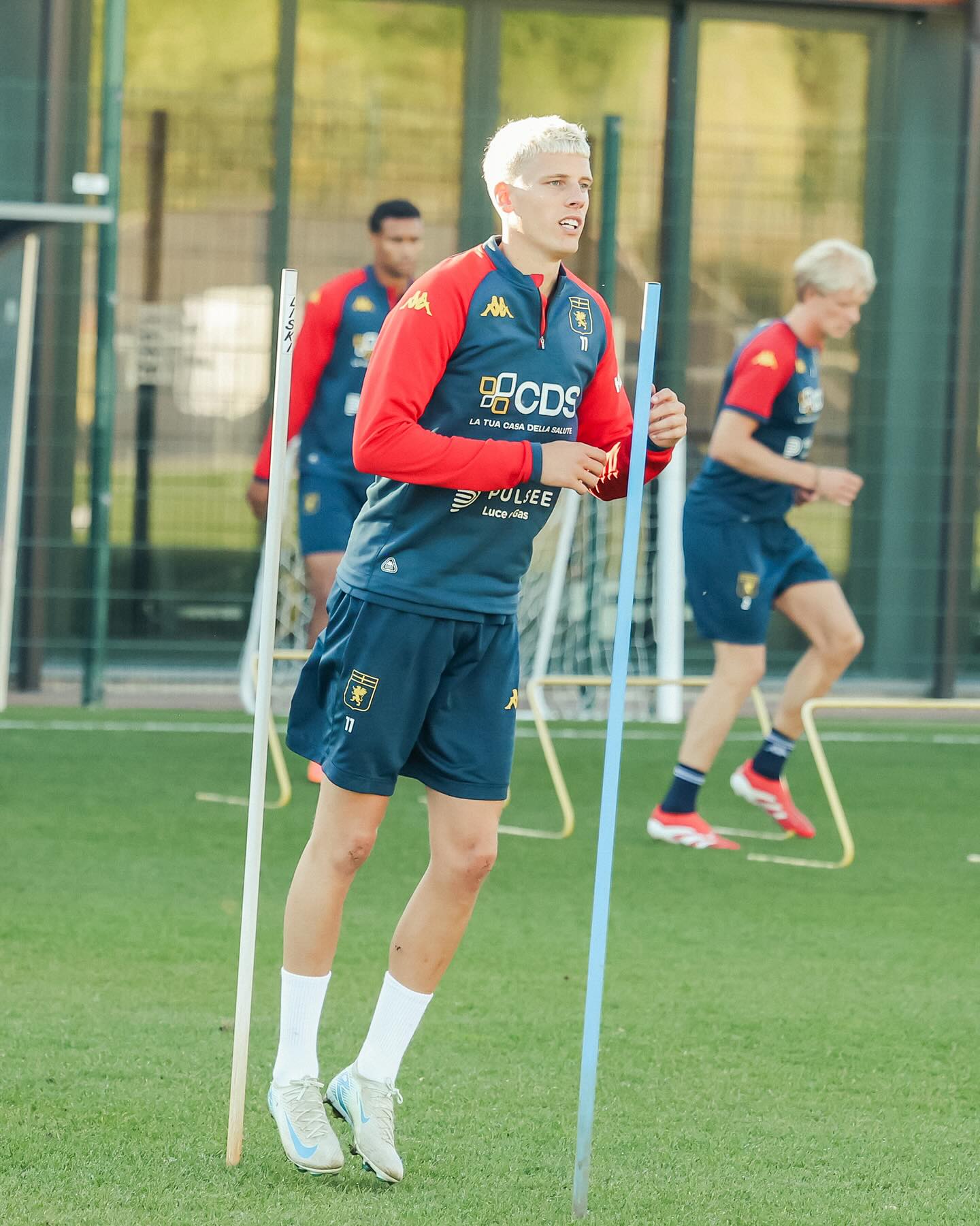 Albert Gronbaek sfila tra i paletti (foto di Genoa CFC Tanopress)