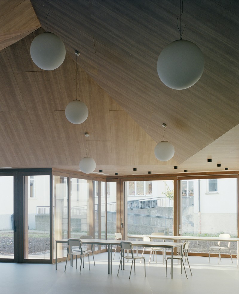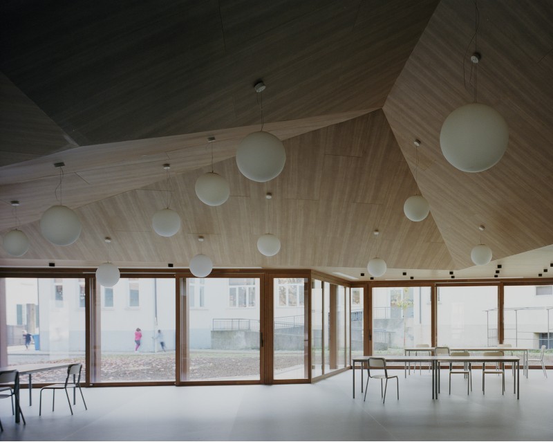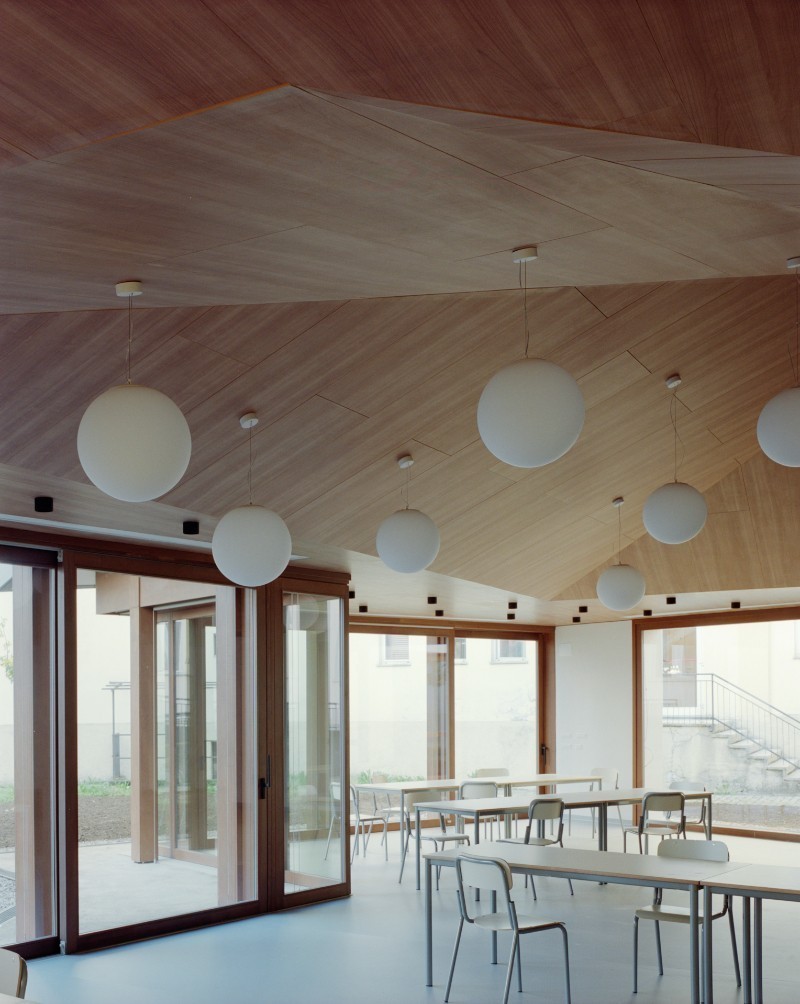Dopo la palestra realizzata al posto di un vecchio bocciodromo, a Lurate Caccivio (Como) lo studio Colombo/Molteni Larchs Architettura con Alessandro Gaffuri termina un’altra opera: la mensa della scuola primaria.