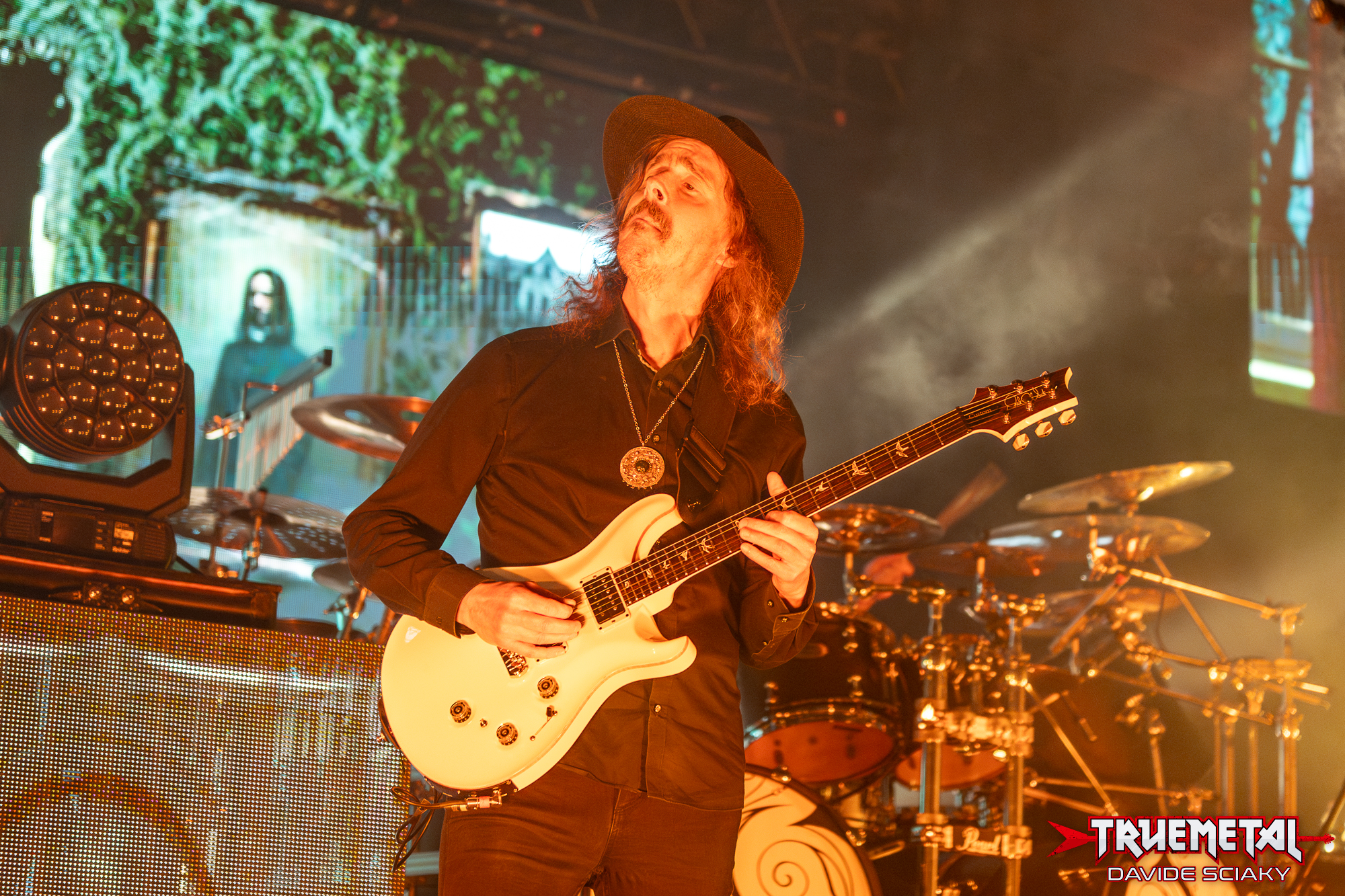Tutt’ad un tratto il silenzio viene interrotto bruscamente, poi ci pensano i rumori sinistri e gli scricchiolii che introducono il primo singolo “§1” a scuotere gli animi dei presenti. Mikael Åkerfeldt appare tra l’ombra e la luce come una figura quasi spettrale, con inquietanti sonorità di linee di chitarra e le malinconiche tastiere a fare da sfondo.