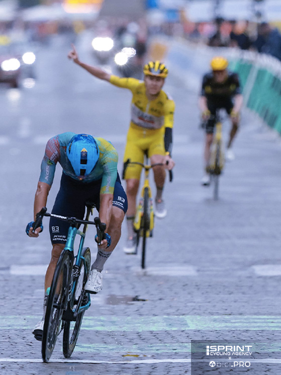 Ballerini dopo un 2024 difficile è tornato a far vedere le sue qualità. qui al Tour de France nella tappa degli Champs Elysées
