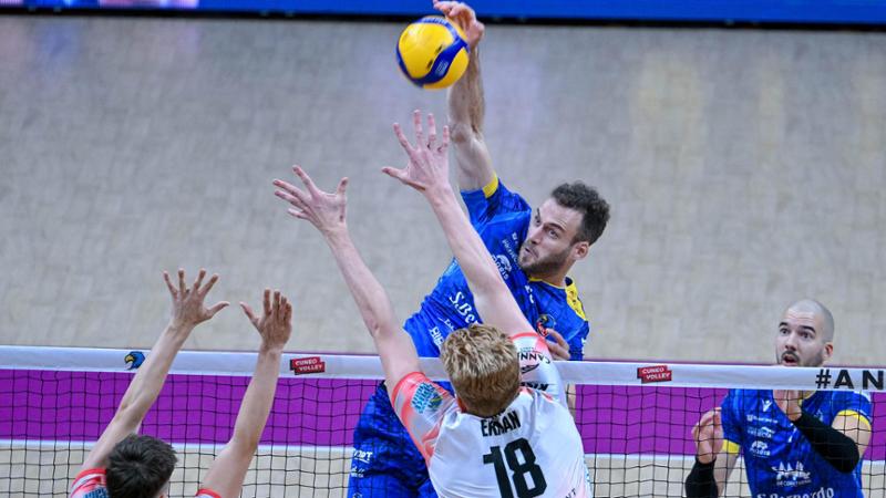Le prime emozioni le ha regalate il test match con l’As Cannes, formazione della Ligue A francese, che è seguito alla presentazione: vittoria 3-1 della Ma Acqua S.Bernardo Cuneo (25-21, 19-25, 25-18, 25-18), mvp e top scorer l’opposto biancoblù Nathan Feral con 21 punti.