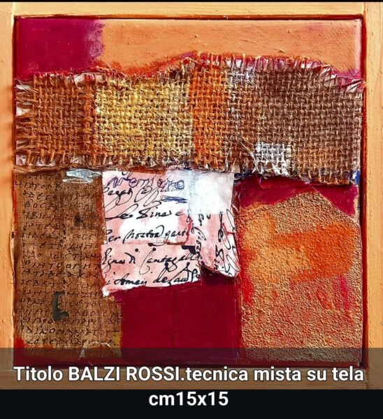 È il caso dell’opera pittorica “BALZI ROSSI” di Veniero nella quale forme astratte e colori caldi sembrano sintetizzare più autunni. Forse non era questo che l’artista voleva comunicare poiché spesso le opere astratte nascono ” “da sè”, senza progetto, emergendo dall’inconscio nel quale però si trova tanto mestiere, ma certi “autunni” è cio che il dipinto ha comunicato a me. Il buon gusto di Veniero nell’accostare i colori è talmente evidente in ogni suo lavoro che quest’opera ne è l’ennesima prova. Non solo i colori, ma anche le materie che compongono questo dipinto sanno d’autunno.