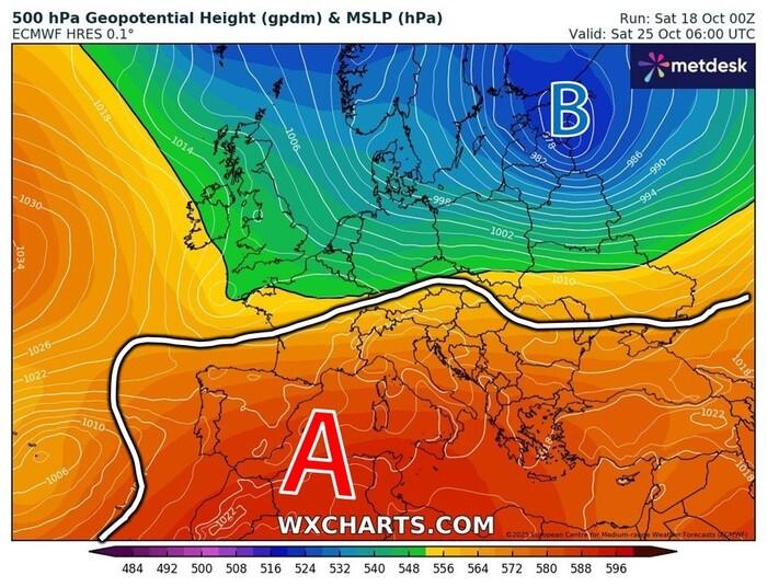 In questa fase dell’anno le condizioni atmosferiche sono spesso soggette a rapidi cambiamenti, tipiche dell’Autunno. Ci troviamo, infatti, in un periodo caratterizzato da forti contrasti termici tra le latitudini polari e quelle subtropicali: questo favorisce gli scambi meridiani, ovvero movimenti dell’aria lungo i meridiani (da nord verso sud e viceversa). Tali dinamiche rendono l’atmosfera molto instabile, con alternanza tra fasi miti e stabili, spesso dominate dall’alta pressione, e brusche irruzioni di aria più fredda o perturbata, in grado di innescare maltempo anche intenso.