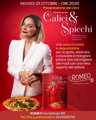 Roma, 23 ottobre 2025 – Il ristorante Romeo, nel cuore del quartiere Testaccio, ospiterà la presentazione del nuovo libro di Antonella Amodio, Calici & Spicchi – Atlante mondiale della pizza e del vino in 100 abbinamenti, edito da Malvarosa. L’incontro, dal titolo “Calici & Spicchi” sarà una cena-degustazione guidata dall’autrice, giornalista, sommelier e scrittrice, dedicata alla scoperta dei migliori abbinamenti tra pizza e vino. L’evento, aperto al pubblico al costo di 35 euro, propone un percorso di degustazione per conoscere, abbinare e apprezzare due protagonisti assoluti della cultura gastronomica italiana, in un contesto conviviale e autentico.