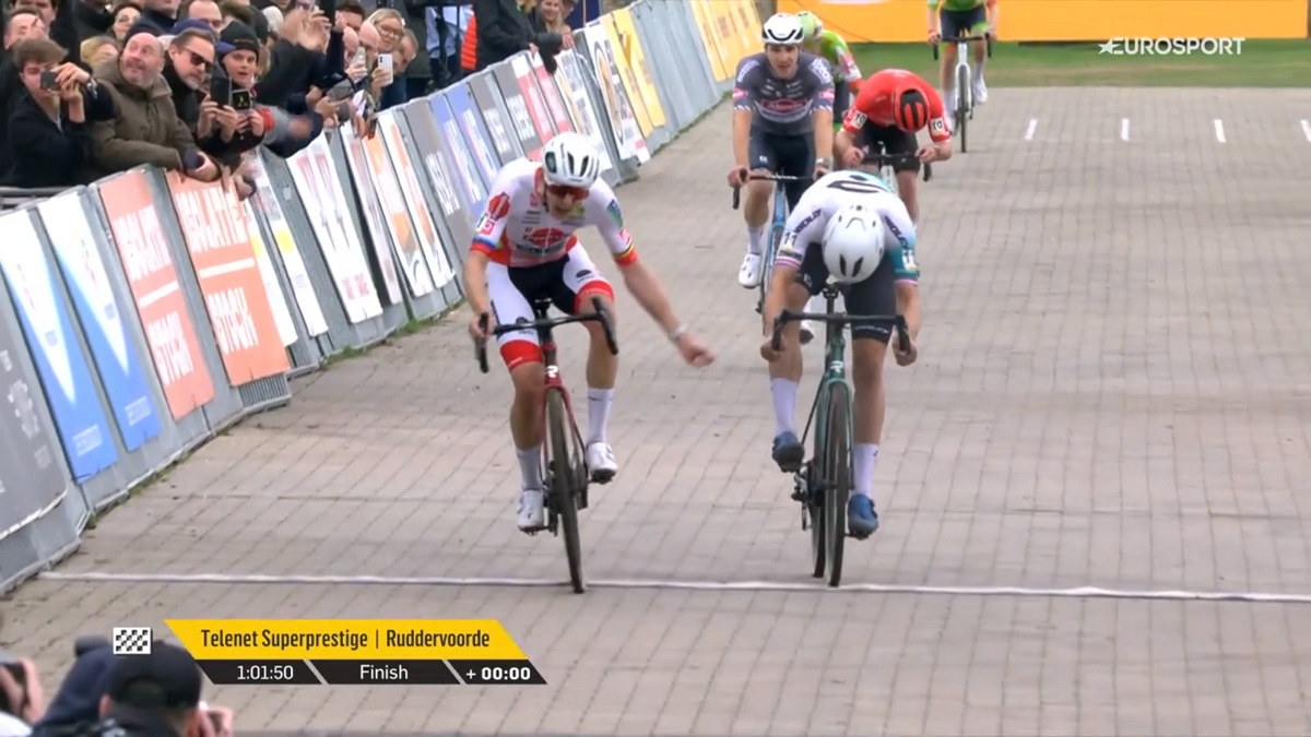 Finale tiratissimo nella prova maschile del Superprestige di Ruddervoorde. Ad avere la meglio al termine di una gara molto combattuta è stato Michael Vanthourenhout, che ha regolato allo sprint uno Joris Nieuwenhuis andato all’attacco a metà corsa e in seguito raggiunto dal belga e da altri corridori. Terzo posto per Niels Vandeputte, che ripete lo stesso piazzamento ottenuto ieri.