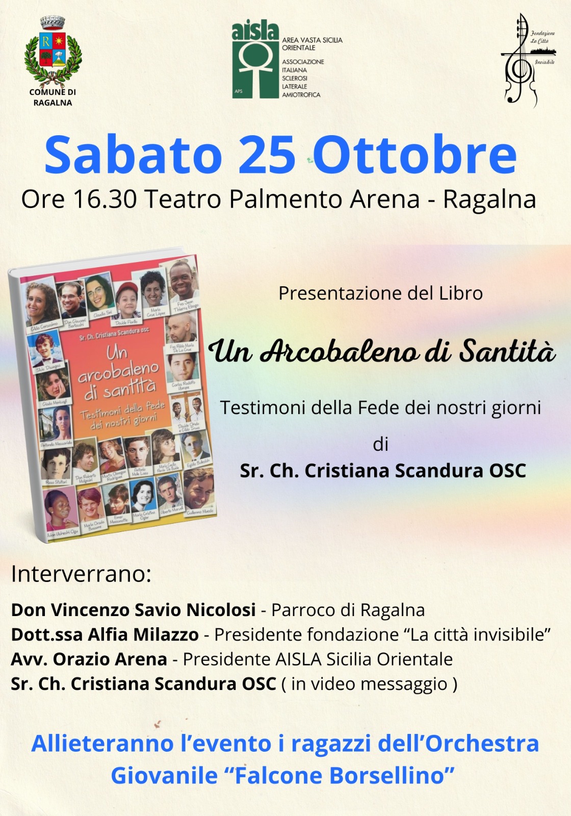 Il Comune di Ragalna ospita la presentazione del volume “Un arcobaleno di santità. Testimoni della fede dei nostri giorni”, scritto da Suor Cristiana Scandura OSC.