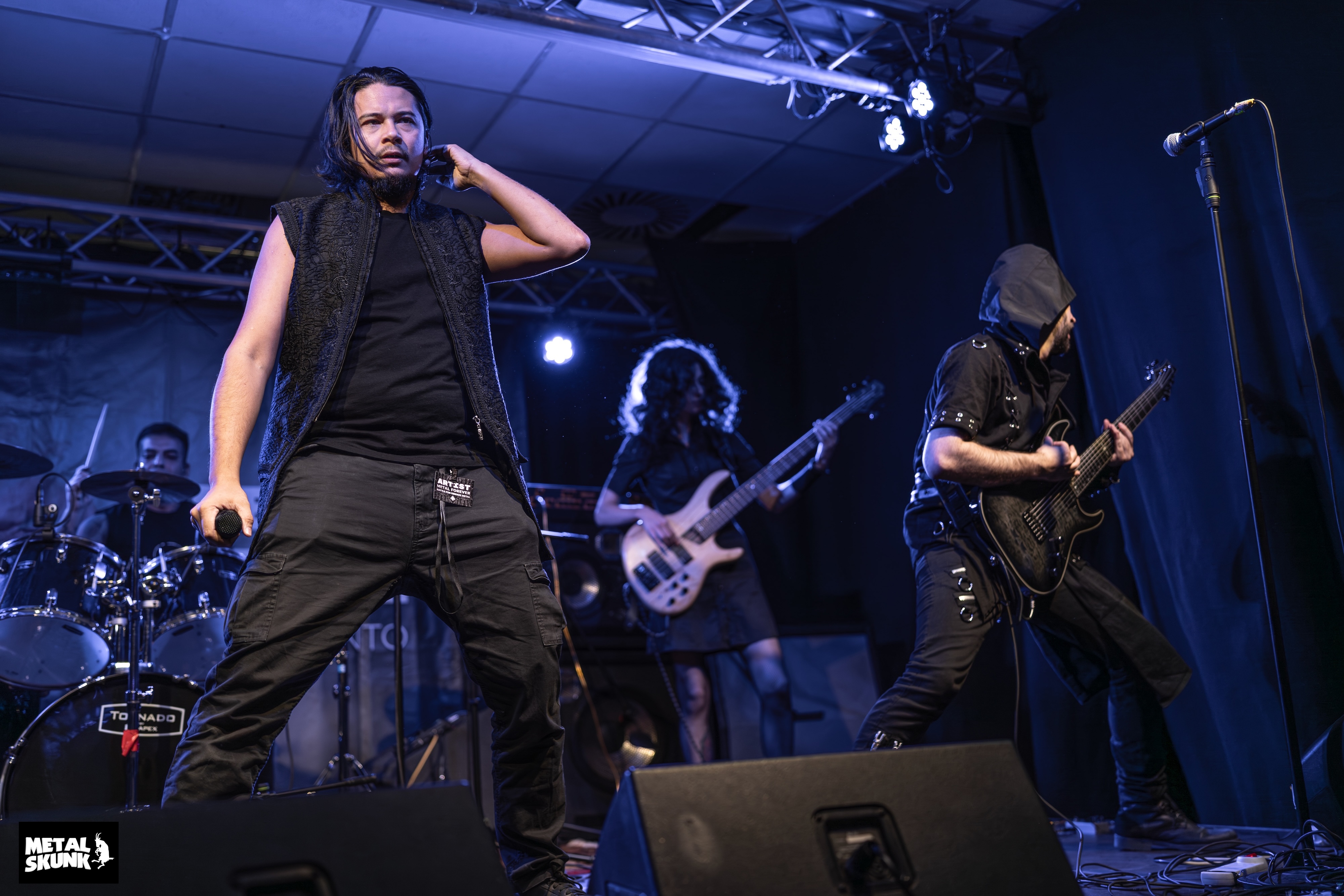 I Voidblight si sono presentati sul palco con un paio di fiacchi brani di rock atmosferico per poi virare improvvisamente sul doom metal e far svoltare il proprio concerto. La loro cantante, Asia, ha rivelato un’ottima presenza scenica e deve però affinare una cosa: le note alte nel cantato pulito, sulle quali commette svariate correzioni pur d’aggirare alcune difficoltà. I Voidblight debbono suonare doom metal, è il loro pane ed è il territorio entro il quale si muovono meglio. Buon concerto, non il migliore della serata, ma quasi.