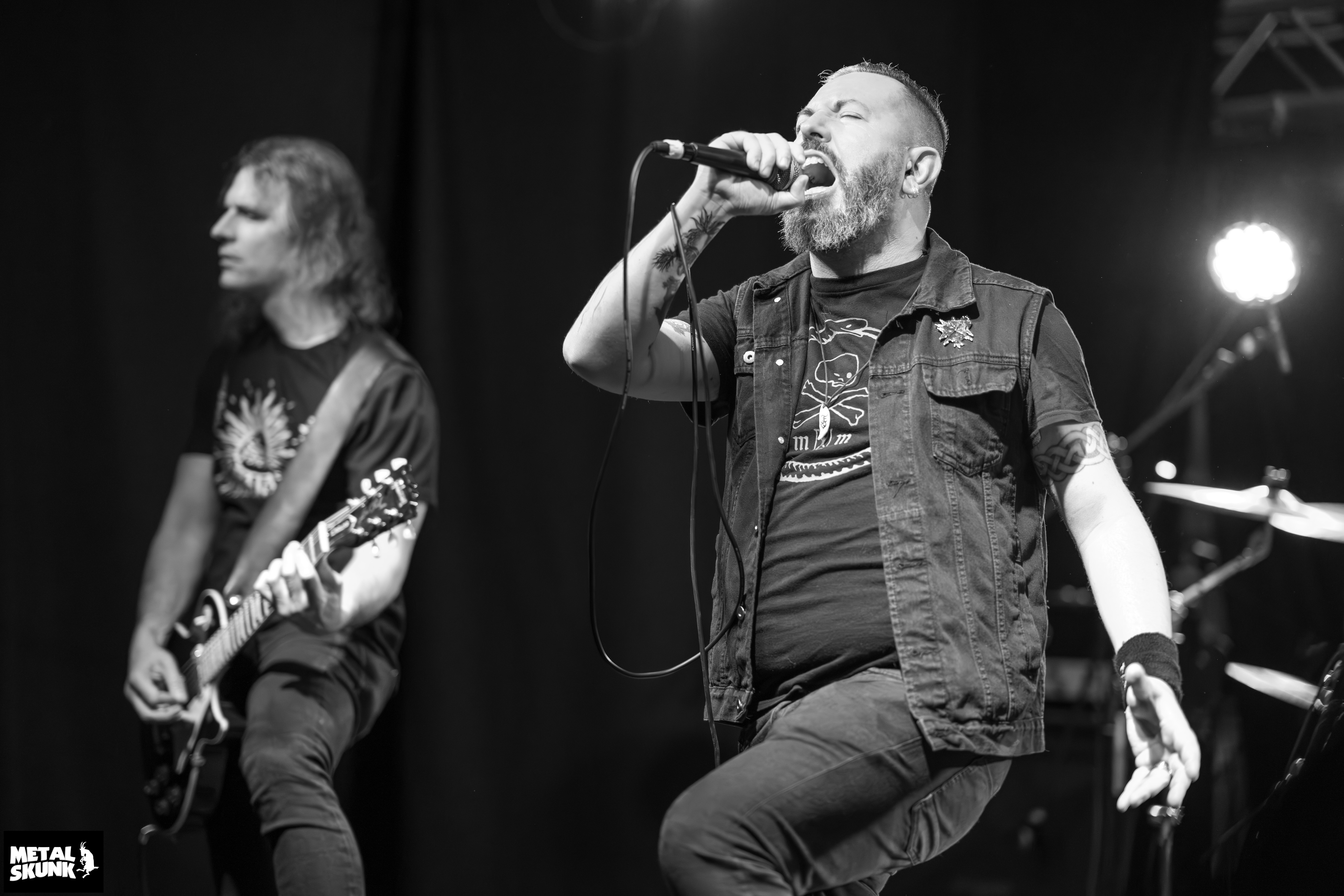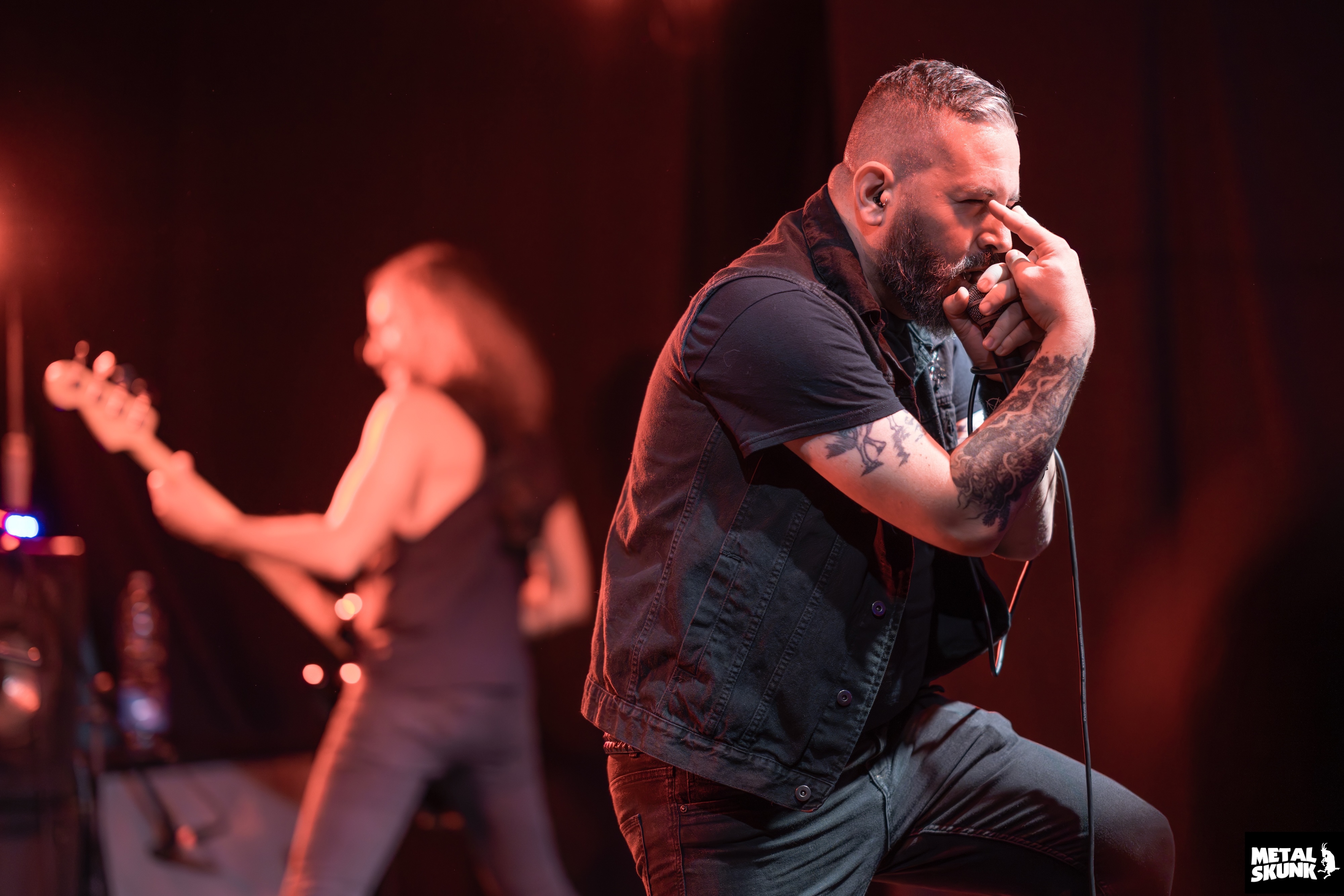 Questi ultimi, a prescindere da come li vogliate chiamare, a prescindere dal fatto che siano il gruppo che incise l’ottimo Gathering the Dark una vita fa, o un clone dei Labyrinth come fatto intendere dal cantante del gruppo precedente, hanno fatto un buon concerto. I musicisti sono tutti sul pezzo e si completano: statuario Claudio Alcara, inarrestabile Davide Gorrini al basso, una via di mezzo fra Bobby Liebling pre-invecchiamento e Bobby Ellsworth, in preda a un costante headbanging e pose metallare sempre azzeccate che lo potrebbero rendere adatto a qualsiasi genere di band. Un suggerimento: noleggiatelo. Date Davide Gorrini a noleggio ai gruppi che vanno in tour e svolteranno tutti, perché con Davide Gorrini sul palco tu, chitarrista, e tu, cantante, vi potete mettere a sedere e finire di vedere Monster: Ed Gein.