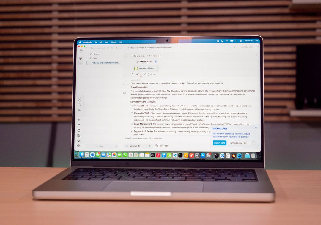 Un inizio, e ci vorrà ancora un po’ di tempo perché a volte questi software sbagliano, e non tutti i modelli sono perfetti, ma con M5 Apple ha posto le basi per la rivoluzione AI che tutti si aspettavano da Apple Intelligence, e che invece arriva dalla porta di servizio. L’IA locale ha senso solo se è veloce e se si possono usare modelli di qualità: su questo MacBook Pro, soprattutto nella versione da 32 GB, si possono usare modelli davvero buoni e i tempi di risposta, e di generazione, sono davvero ottimi.