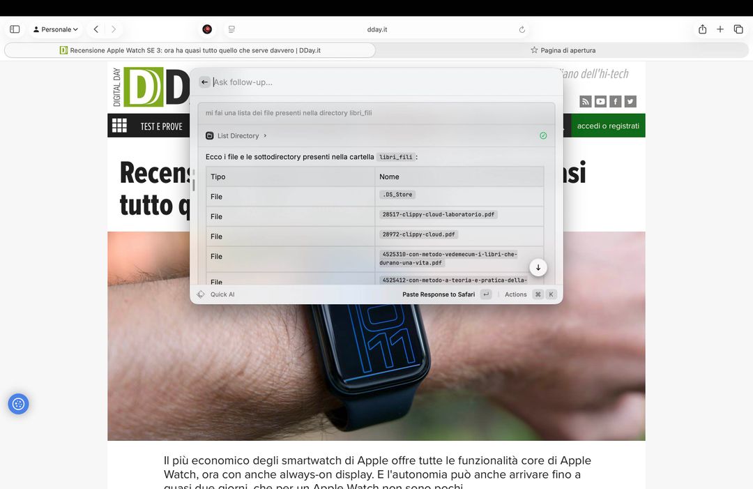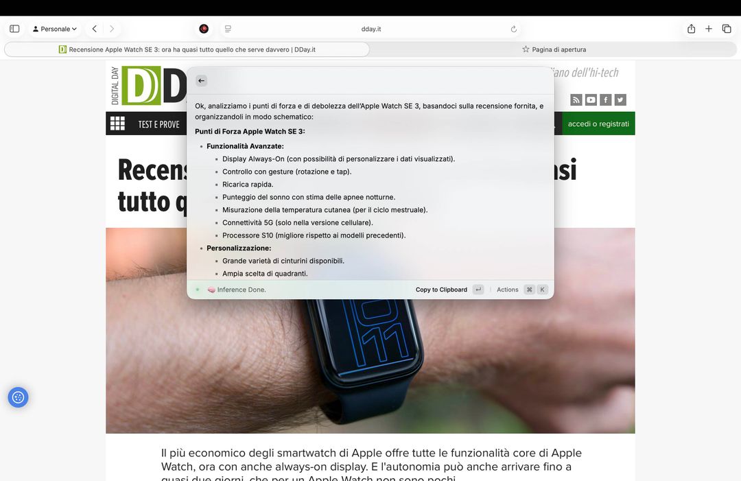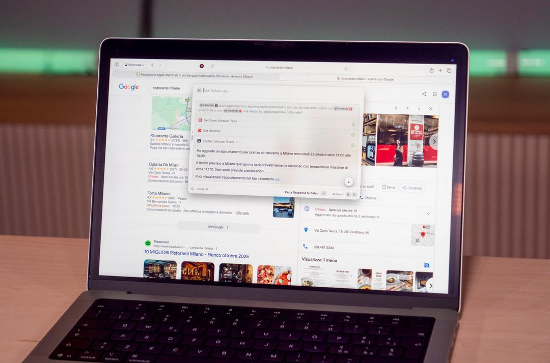 Sempre con il rilascio di macOS Tahoe Apple ha aggiunto la possibilità, per gli utenti, di utilizzare questi modelli all’interno dei Comandi Rapidi, creando flussi di lavoro che fino ad oggi non era possibile gestire in locale: si può chiedere di elaborare un testo, di riassumerlo o di tradurlo e di usare il risultato della manipolazione come elemento alla base per una azione eseguita da un’altra app.