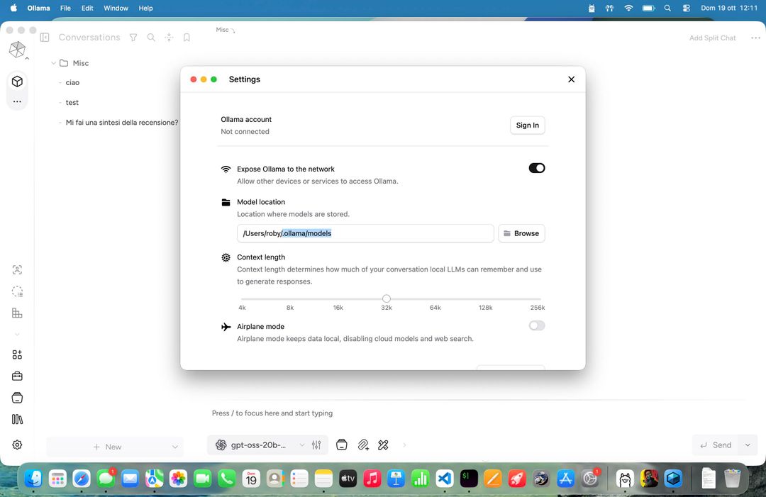 Se i modelli Apple Foundation non sono ancora perfetti, grazie ad Ollama sul MacBook Pro M5 si può usare il modello open da 20 miliardi di parametri di OpenAI, si può usare LLama, si possono usare Gemma, Qwen, Phi, Deepseek e decine di altri modelli: sta all’utente scegliere il modello più adeguato a seconda anche delle sue necessità.