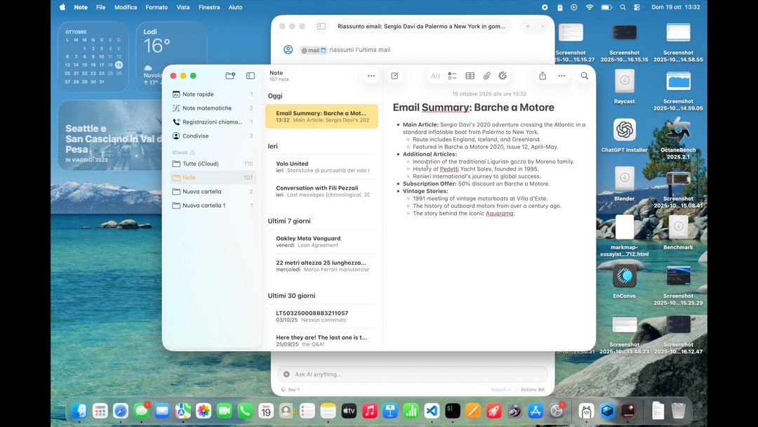 Qui sotto abbiamo chiesto ad esempio di prendere una mail, riassumerla e creare una nota. Lo ha fatto, in pochi secondi.