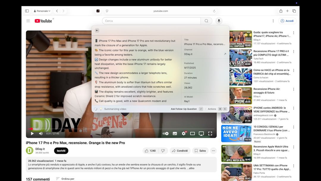 Volendo tramite IA Raycast può anche riassumere e leggere i “video” di Youtube: basta chiederlo mentre si sta guardando un video e sarà lui a capire di che video si tratta, chiederà a Youtube i sottotitoli e in base a questo oltre ad una sintesi potrà anche rispondere a domande specifiche.