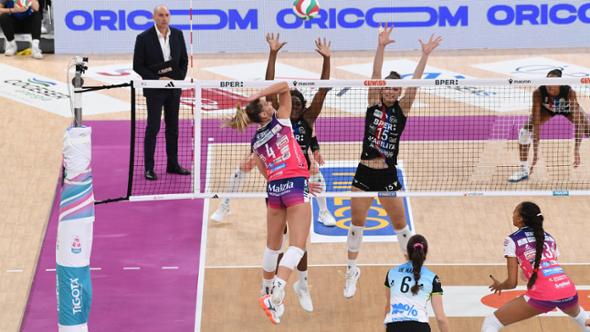 E sottolinea: «Credo che domenica si siano viste un po’ due partite in una: nei set vinti abbiamo giocato al nostro livello, tenendo la giusta intensità in tutti i fondamentali, mentre nei due persi ci è mancata quell’intensità soprattutto in difesa. Bergamo è stata molto brava ad alzare il ritmo del proprio muro-difesa, noi abbiamo avuto la capacità di venirne fuori e di portare a casa una vittoria che vale tanto».