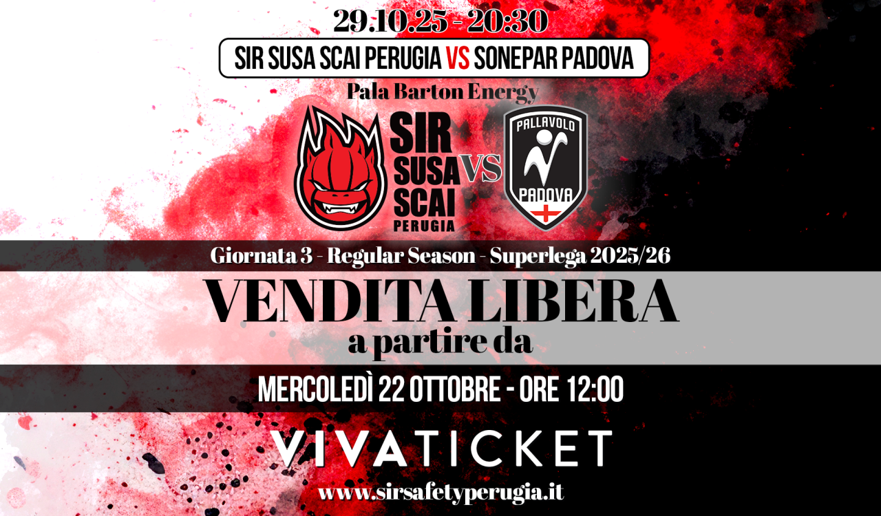 E’ attiva dalle 12 di oggi, mercoledì 22 ottobre, la vendita libera dei biglietti per il match casalingo con la Sonepar Padova, in programma mercoledì prossimo, 29 ottobre, alle 20:30.