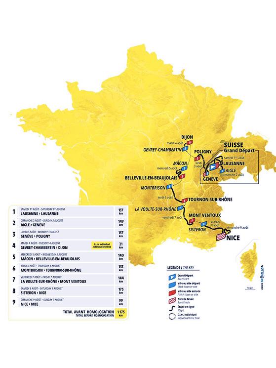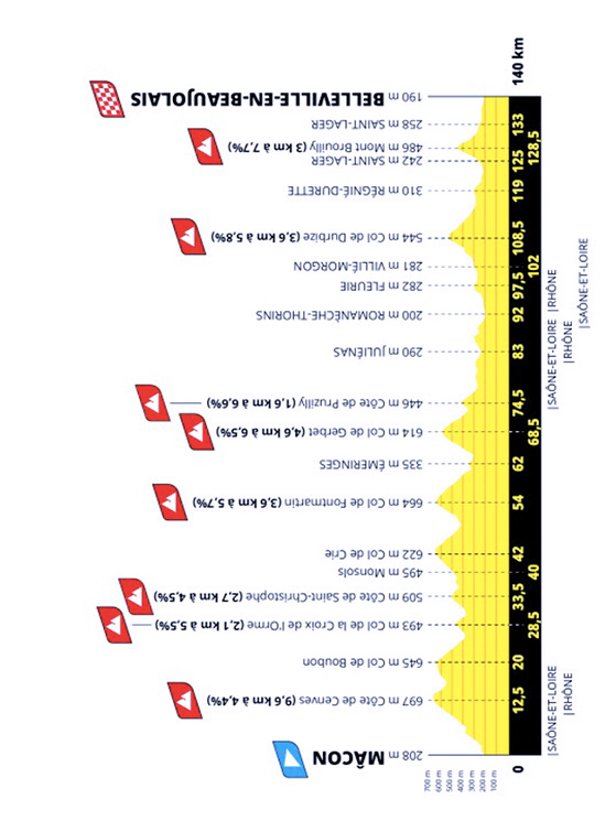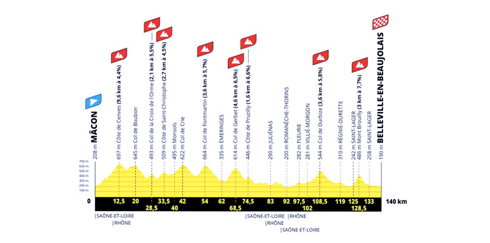 Conta molto perché ci sono tante tappe da fuga. Per esempio, la terza tappa da Ginevra ha una salita di 11 chilometri all’inizio: lì può partire una fuga. Non vedo rischi per la generale, ma potrebbe essere una tappa per le fuggitive. La quinta frazione, quella successiva alla crono, conta otto Gpm, con una salita lunga all’inizio e poi tante brevi.