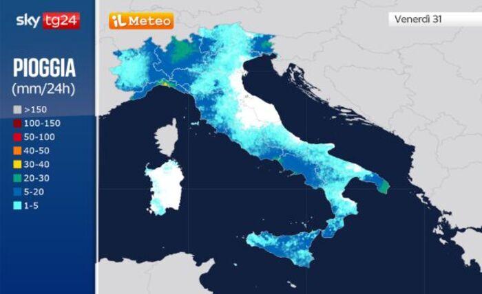 Su tutta la fascia tirrenica si prevedono piogge e temporali che, a tratti, potranno risultare anche di forte intensità, con il rischio concreto di locali nubifragi e, di conseguenza, con possibili criticità idrogeologiche.Mappe precipitazioni per HalloweenUna graduale tregua è attesa a partire da Sabato 1 Novembre: nel weekend di Ognissanti il Ciclone di Halloween allenterà pian piano la sua morsa, ma l’instabilità non si dissolverà del tutto.