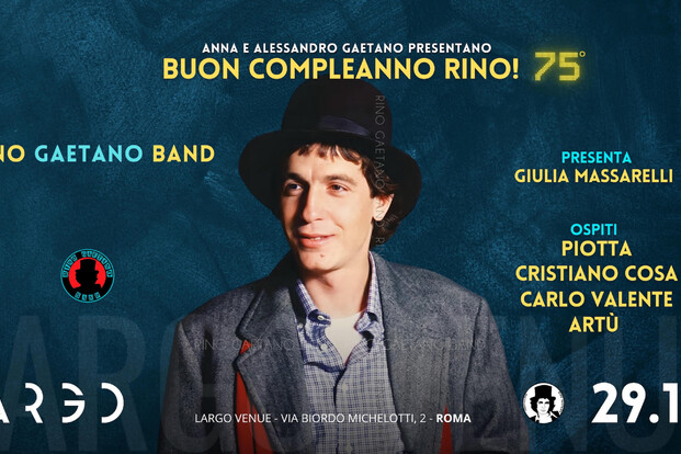 E’ stato anticonformista, aveva un talento unico nello smascherare le contraddizioni degli esseri umani senza mai cedere alla retorica. La famiglia di Rino Gaetano, la sorella Anna e il nipote Alessandro, omaggiano l’artista, nello stesso giorno in cui avrebbe compiuto 75 anni, un concerto a Roma, Largo Venue. Protagonista la Rino Gaetano Band con alcuni ospiti: Piotta, Carlo Valente, Cristiano Cosa e Artù. Presenta la serata Giulia Massarelli. Una serata speciale nel segno della musica, dell’amicizia e dell’eredità culturale di un artista unico, capace ancora oggi di parlare al presente con poesia, ironia e libertà. Il 29 ottobre 2025, alle ore 21:30, il concerto-evento della Rino Gaetano Band, formazione ufficiale che, insieme al nipote Alessandro, mantiene viva la memoria e la forza delle canzoni di Rino. Sul palco, insieme ad Alessandro (voce, chitarra, piccole percussioni), ci sono Ivan Almadori (voce, chitarra), Fabio Fraschini (basso), Michele Amadori (tastiere, cori), Alberto Lombardi (chitarra elettrica, cori) e Marco Rovinelli (batteria), musicisti affiatati che contribuiscono a rendere ogni spettacolo unico. In scaletta brani celebri come Gianna, Aida, Mio fratello è figlio unico, Sfiorivano le viole e gioielli meno noti come Le Beatitudini e Ti voglio. Un’occasione per cantare, ricordare e continuare ad immaginare il mondo attraverso i suoi occhi.
