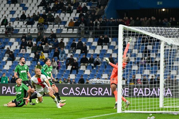 Il gol di Ostigard in Sassuolo-Genoa (foto Genoa CFC Tanopress)