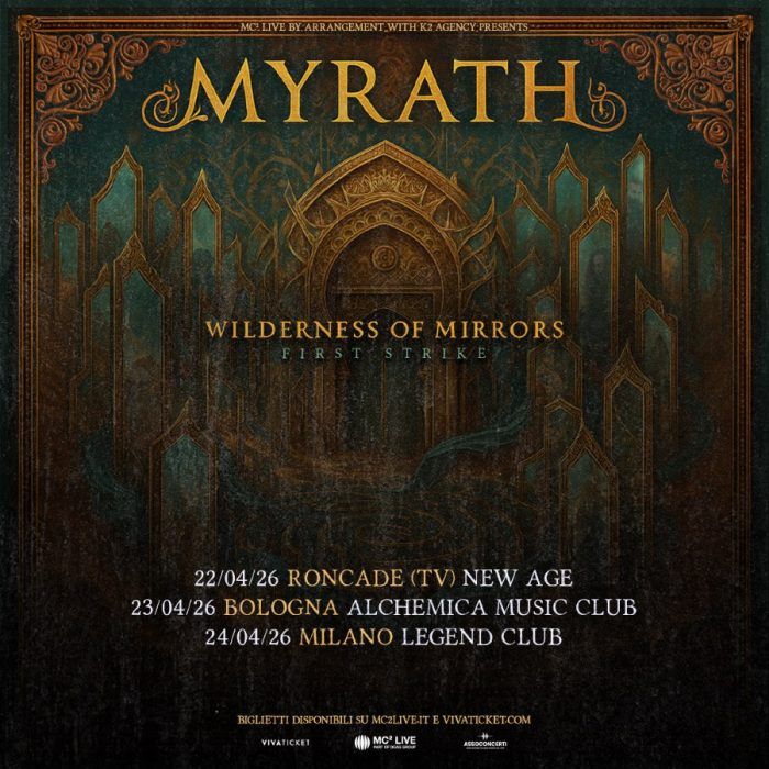 “Wilderness of Mirrors” uscirà il 27 marzo 2026 su earMUSIC e contiene 10 brani inediti che continuano l’evoluzione dei Myrath nella fusione di influenze orientali con il progressive e il power metal. I fan potranno aspettarsi un viaggio tra fantasia e realtà, tra melodie ossessive, riff fragorosi e arrangiamenti cinematografici. Per celebrare l’uscita, i Myrath intraprenderanno un importante tour europeo a partire da aprile 2026, portando “Wilderness of Mirrors” ai fan di 16 paesi. Previste tre date italiane