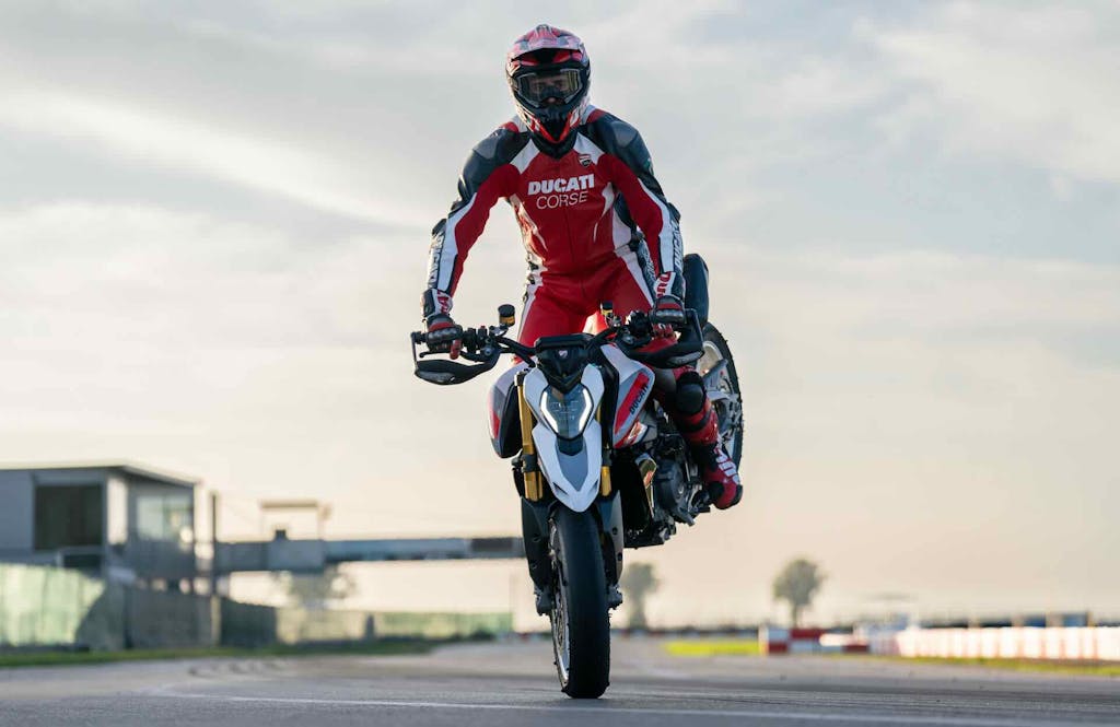 Oggi, due decenni dopo, la storia continua con la nuova Hypermotard V2, affiancata dalla versione SP: due moto che raccolgono l’eredità di un modello leggendario e la proiettano nel futuro, tra design radicale, tecnologia evoluta e una ciclistica ripensata da zero.