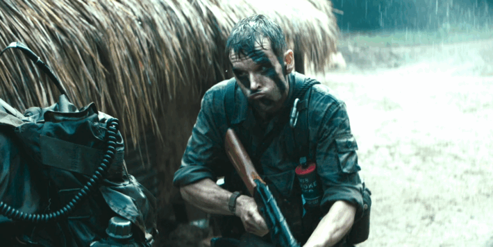 Il che mi porta all’altro grande cruccio che ho su questo film: è pieno di bestione preistoriche che fanno cose interessanti, e l’unico modo che i personaggi umani hanno per interagire con loro è sparacchiargli fortissimo in fazza. C’è una quantità incalcolabile di sparatorie, e mica scene intricate e coreografate e belle belliche, no: gran parte delle sequenze d’azione consistono nel guardare gente che spara verso la giungla urlando, senza comunque riuscire a scalfire la pellaccia delle bestie a cui sparano. Ogni tanto una di queste bestie si magna la testa di uno di questi soldati: bello, ripeto, ma troppo poco e troppo secondario rispetto al dramma militare e umano di questa squadra di disperati che bla bla bla che palle raga, che palle.