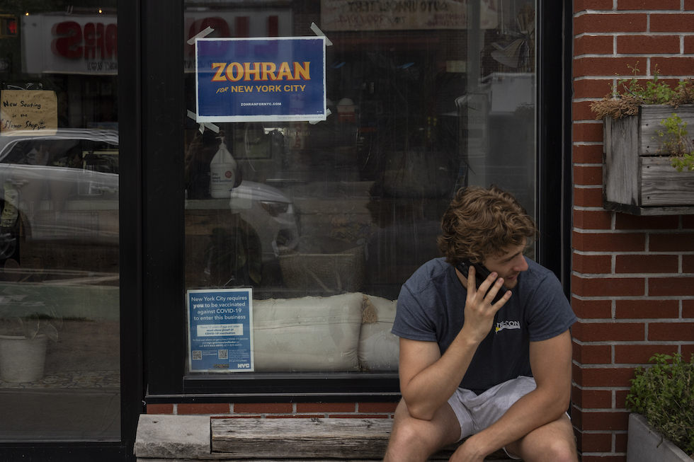 Tutti questi elementi visivi sono stati ripresi anche nel manifesto della campagna elettorale. Lo ha realizzato Tyler Evans, designer legato ai Socialisti Democratici e direttore del team di comunicazione di Alexandria Ocasio-Cortez. In un’intervista data a Fast Company, Evans ha raccontato di aver accentuato l’effetto d’ombra del logo originale per renderlo ancora più tridimensionale, facendo così risaltare il nome e il volto di Mamdani in una fase in cui era ancora poco conosciuto.
