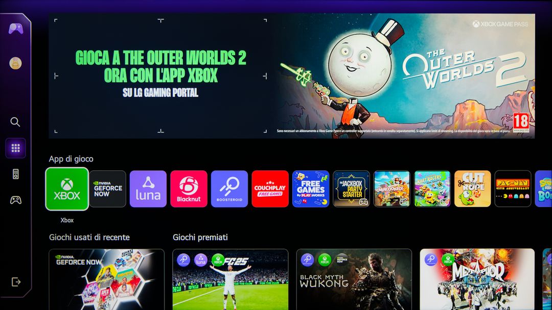 Oltre a ciò ritroviamo anche sul QNED93 la funzione di creazione di un profilo personalizzato dell’audio, con una procedura simile a quella già esistente per creare un preset video, l’introduzione del Filmmaker Mode anche per il Dolby Vision, il supporto per la funzione Chromecast di Google oltre che AirPlay 2 di Apple e l’integrazione con la piattaforma IoT di LG ThinQ. Tra le tante app disponibili sulla piattaforma, non manca l’hub dedicato al gaming, LG Gaming Portal, con il supporto per i principali servizi di cloud gaming, tra cui Xbox Game Pass, NVIDIA GeForce Now e Amazon Luna. Rispetto a quanto visto sulle serie OLED evo C5 e G5, però, il processore α8 Gen2 ci è parso più lento e soprattutto l’apertura del menù delle regolazioni a tratti – ad esempio se si sta utilizzando un’app di streaming – richiede qualche secondo di troppo per l’apertura, mentre la navigazione risulta appesantita.