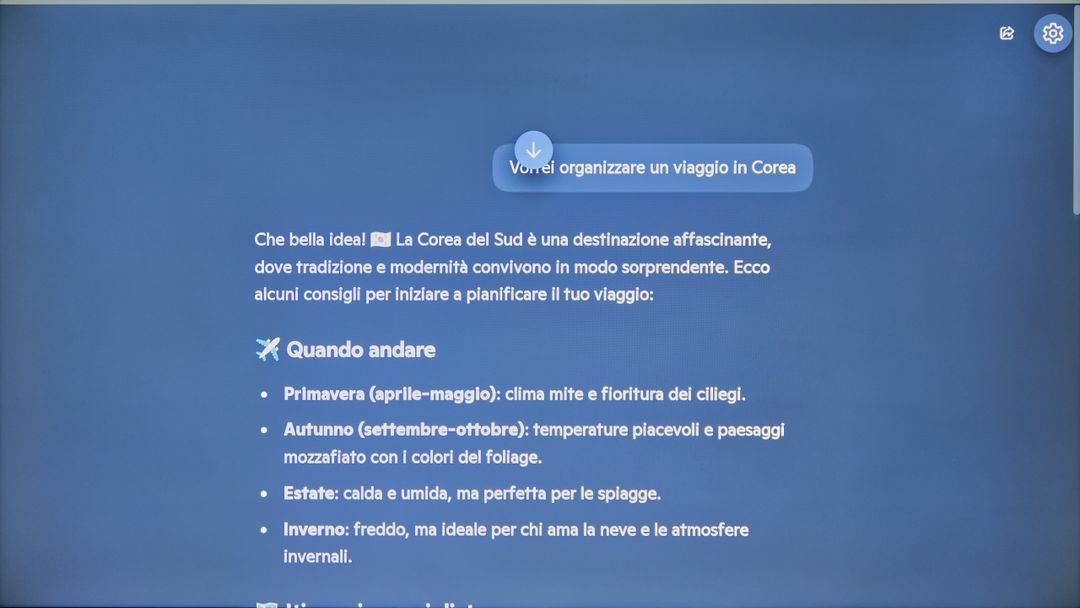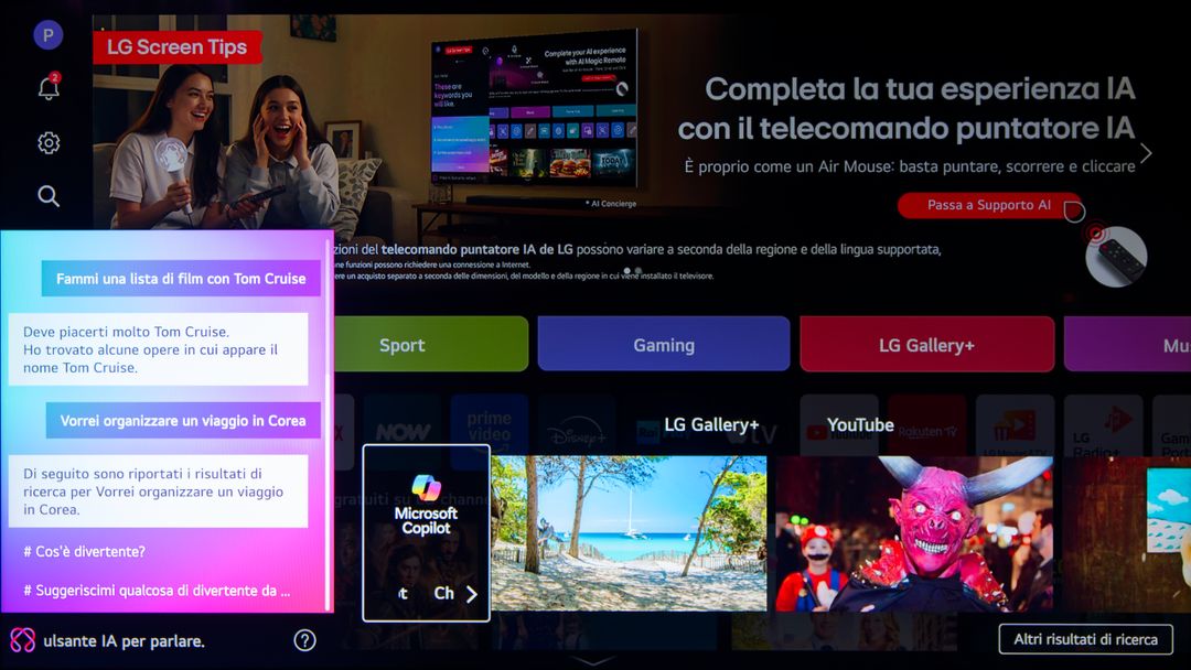 A ciò si aggiunge l’integrazione con CoPilot di Microsoft come chatbot per le richieste generiche che esulano dagli argomenti coperti dagli assistenti integrati, disponibile in realtà come una sessione sul browser web integrato di webOS.