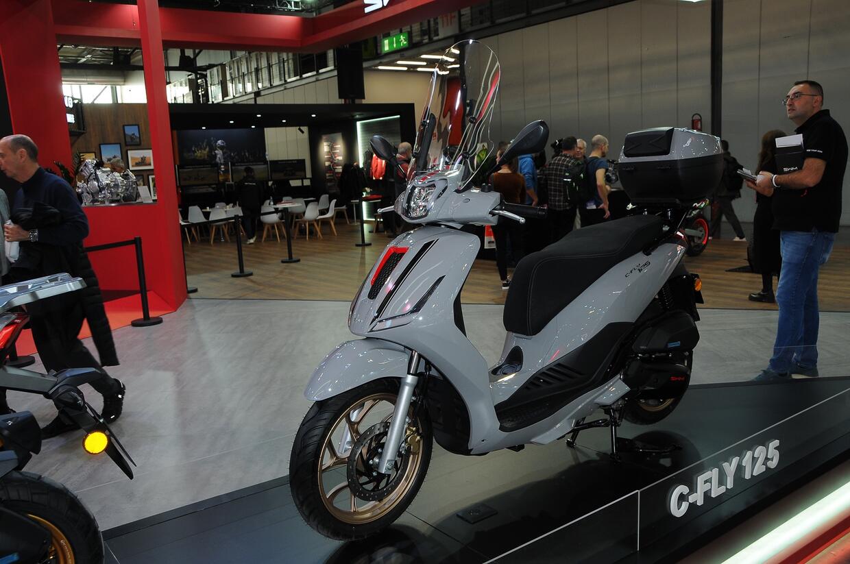 Il nuovo C-Fly è caratterizzato da linee semplici ed eleganti, e offre soluzioni pratiche come l’ampia pedana piatta e la sella spaziosa e ad appena 79 cm da terra. Il motore di questo scooter a ruote alte è un monocilindrico quattro tempi di 125 cm³, raffreddato ad aria e in grado di sviluppare una potenza massima di 10,3 CV a 7.500 giri. L’impianto frenante vede due dischi, entrambi sorvegliati di serie da ABS, che ricordiamo non essere obbligatorio sugli ottavo di litro. Di serie viene offerto anche il traction control, che offre sicurezza in più su fondi stradali scivolosi. Le ruote sono da 16” l’anteriore e 14” la posteriore, il serbatoio offre una capienza di 6,5 litri mentre il peso in ordine di marcia è di 136 kg.