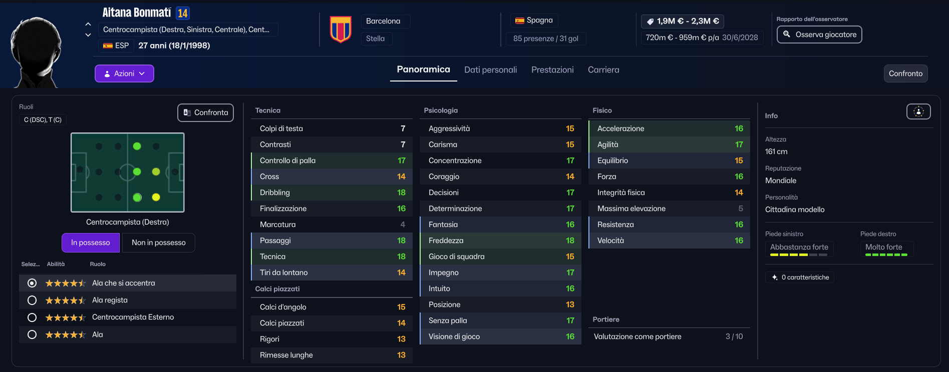 Le caratteristiche di Aitana Bonmatì, calciatrice del Barcellona e della Nazionale spagnola, nel gioco (FM26)