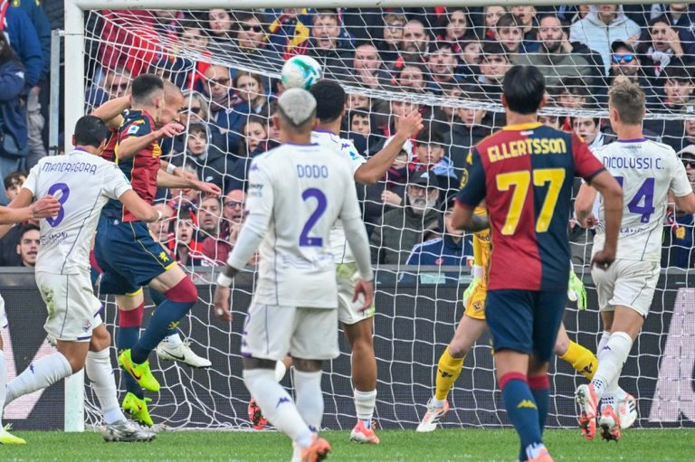 Il gol di Ostigard alla Fiorentina (foto Genoa Cfc Tanopress)
