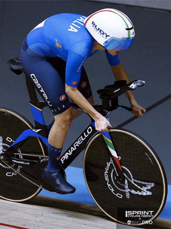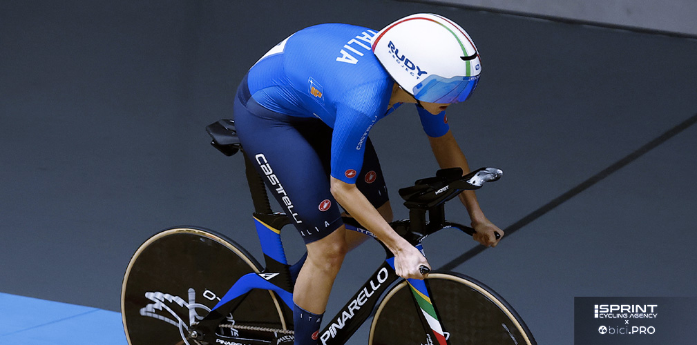Le manca ancora qualcosina in termini di volume di lavoro. Finora abbiamo lavorato di più sull’inseguimento e sui quartetti. Sulle vere e proprie crono lunghe, secondo me non ha ancora un lavoro completamente definito. Bisognerebbe costruirlo in modo mirato. Perché anche lì, sia mentalmente che fisicamente, bisogna abituarsi a quel tipo di sforzo. E per ora, anche per le richieste che arrivano dalla pista, ci concentriamo su lavori più brevi.