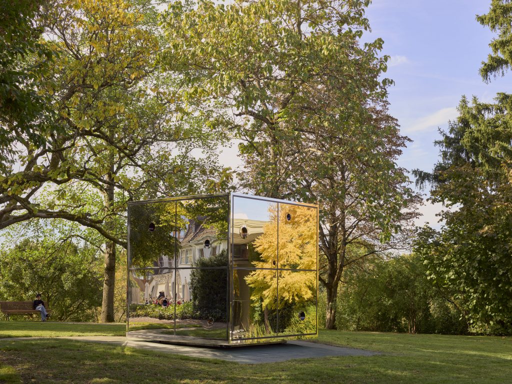Il centro della mostra è l’ambiente immersivo Infinity Mirrored Room – Illusion Inside the Heart (2025), concepito appositamente per la Beyeler, uno spazio specchiante dove le luci si muovono lente come costellazioni. Nel parco, il Narcissus Garden (1966/2025) lavorando il prato come in un paesaggio di riflessi mobili, eco del progetto presentato ad Arles la scorsa estate. Le sfere d’acciaio, sospinte dal vento, ampliano l’opera oltre i limiti del museo, creando un dialogo continuo tra spazio naturale e percezione.